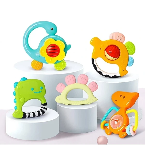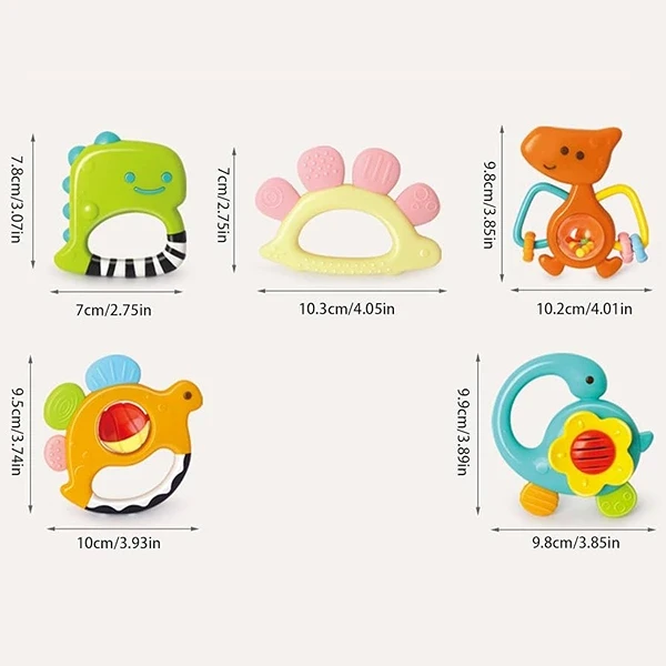 مجموعة "عضاضات الديناصورات" مجموعة متنوعة من الألعاب التي تشجع على الاستكشاف والتفاعل. مصممة خصيصًا لتطوير المهارات الحركية لدى الأطفال، حيث يمكنهم اللعب والضغط والاهتزاز. مناسبة من عمر 3 أشهر وما فوق، تحتوي المجموعة على 5 أدوات مصنوعة من مواد آمنة ومناسبة للأطفال