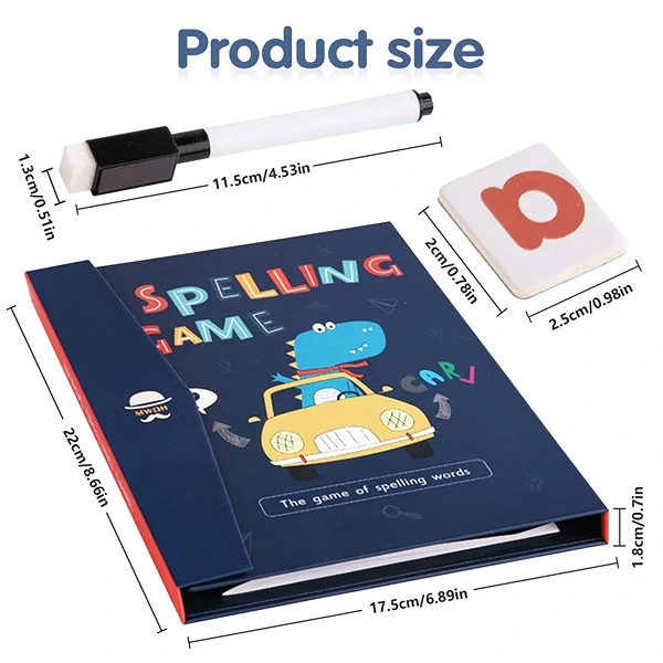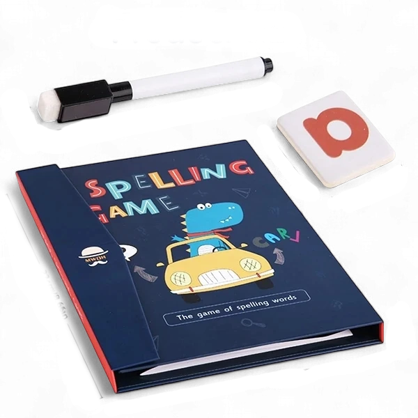 • مكونات اللعبة: لوحة سبورة مغناطيسية للكتابة عليها أو إلصاق الحروف، كتاب، حروف مغناطيسية، و52 حرفا، وقلم ماركر