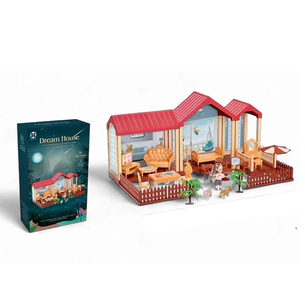 نموذج طابق واحد من سلسلة "منزل الأحلام"، مصمم بأسلوب الشقق العصرية المفتوحة. يتميز بتفاصيل دقيقة وأثاث كامل يمنح الطفل تجربة محاكاة ممتعة لبناء وتأثيث منزله الخاص.