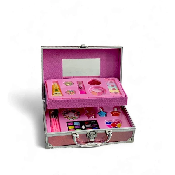 - مجموعة مكياج شاملة: تحتوي على أحمر شفاه، طلاء أظافر، ومجموعة من الألوان اللامعة، مما يسمح للفتيات بإطلاق إبداعهن.