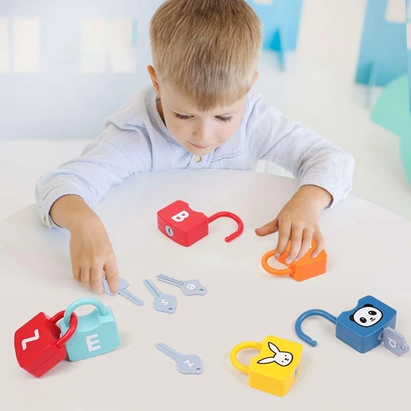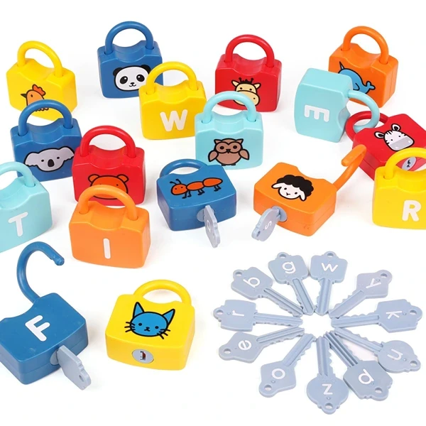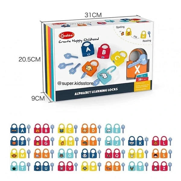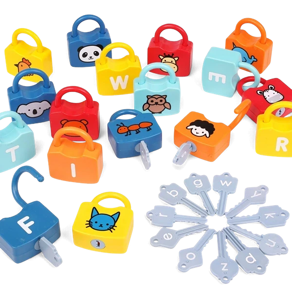 - تعليم تفاعلي: تشمل المجموعة 26 قفلًا ملونًا يحمل كل منها حرفًا أو رقمًا، مما يسهل على الأطفال التعرف على الحروف بطريقة ممتعة.