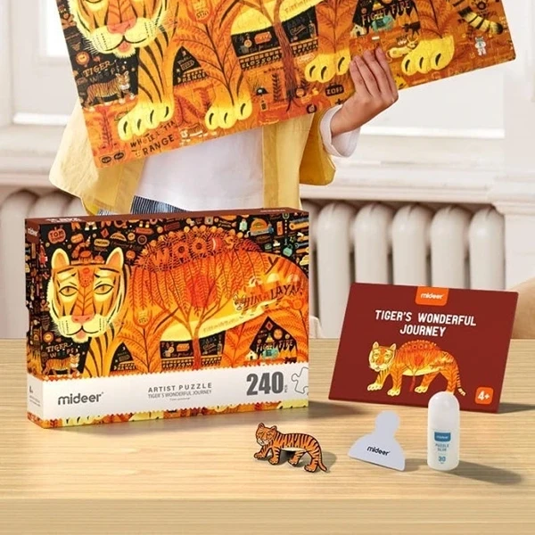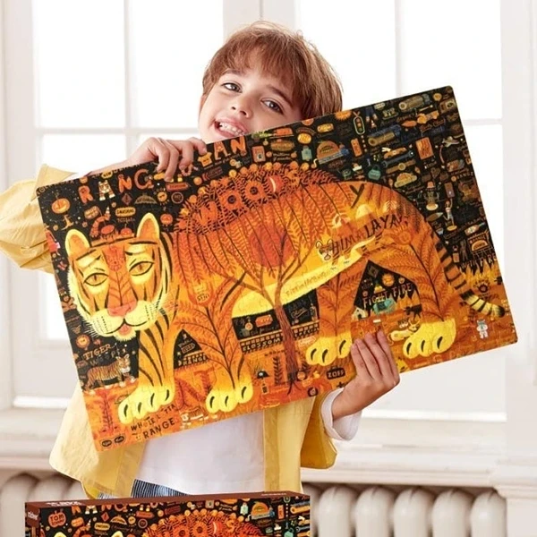 - تتميز اللعبة برسومات فنية رائعة للنمر في بيئته الطبيعية، مما يجعله قطعة فنية جميلة يمكن للأطفال الاستمتاع بها أثناء اللعب.
