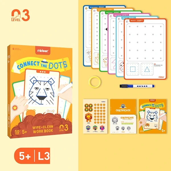 - تعلم تفاعلي: حتوي الكتاب على 50 ورقة عمل تتضمن أنشطة ""وصل النقاط"" التي تشجع الأطفال على تحسين مهاراتهم في الرسم والتنسيق بين اليد والعين.