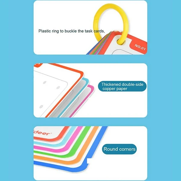 - تصميم آمن: الورق سميك ومعالج بشكل خاص لضمان عدم انزلاق القلم، مع زوايا مدورة لحماية الأطفال أثناء اللعب.