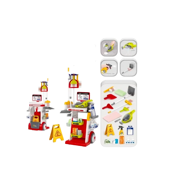 مجموعة عربة النظافة لعب تفاعلي يعزّز المسؤولية والمهارات الحركية لدى الأطفال بطريقة آمنة وممتعة.