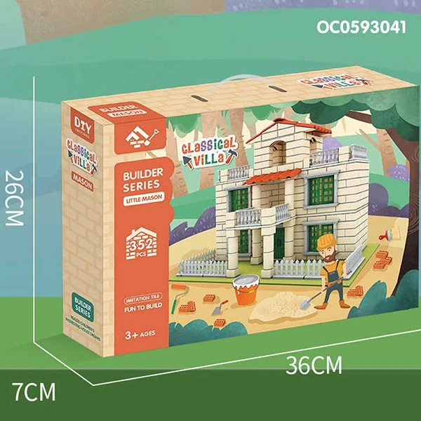- 352 قطعة ملونة: تحتوي المجموعة على مجموعة متنوعة من القطع الملونة، مما يتيح للأطفال إمكانية بناء فيلا كلاسيكية مع تفاصيل معمارية جذابة.