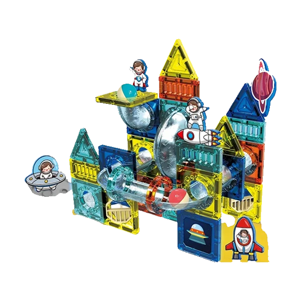 مجموعة مكعبات البناء المغناطيسية مضيئة متعددة الاستخدامات (69 قطعة) تجمع بين البناء الحر، مسار الكرات الديناميكي، والتعليم الحسي — لعبة تعليمية ممتعة وآمنة للأطفال.