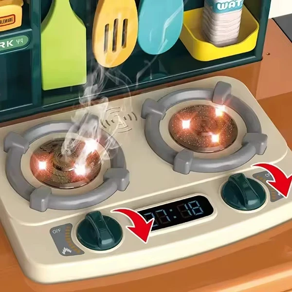 - تصميم جذاب: يأتي المطبخ بتصميم أنيق وملون، مثالي لجذب انتباه الأطفال وتحفيز خيالهم.