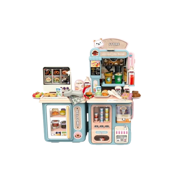 مطبخ لعب تفاعلي 2*1 مع ملحقات متعددة يحاكي تجربة الطهي والمطعم. تصميم محمول/قابل للتحويل، ملائم للعب التخيلي وتنمية المهارات الحركية. مناسب للأطفال من 3 سنوات فما فوق.