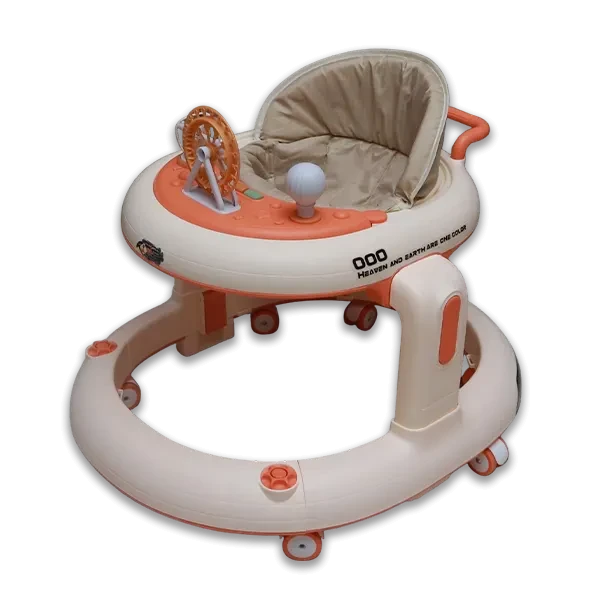- عجلات دوارة : عجلات مرنة توفر حركة سهلة وسلسة، مما يسمح للطفل بالتنقل بحرية وأمان داخل المنزل.