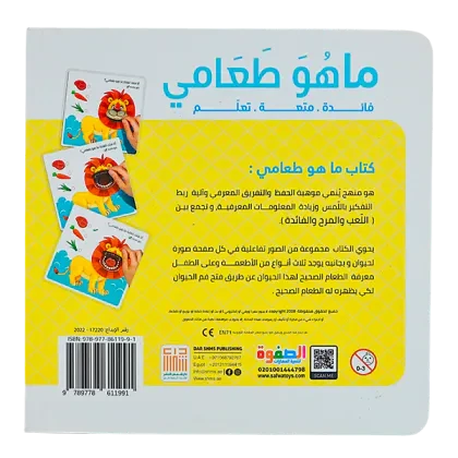 هل تساءلت يومًا عن الطعام المفضل لكل حيوان؟ يقدم لك كتاب "ماهو طعامي" تجربة تعليمية ممتعة للأطفال، حيث يكتشفون مع أصدقائهم من الحيوانات مثل الأسد، البقرة، والضفدع، ما يحبونه من طعام.