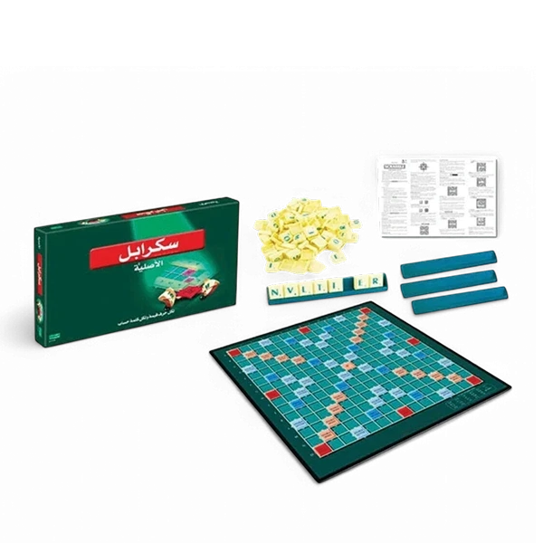 متطلبات اللعب: رقعة سكرابل، حامل قطع الحروف لكل لاعب، قطع الحروف، ورقة وقلم.