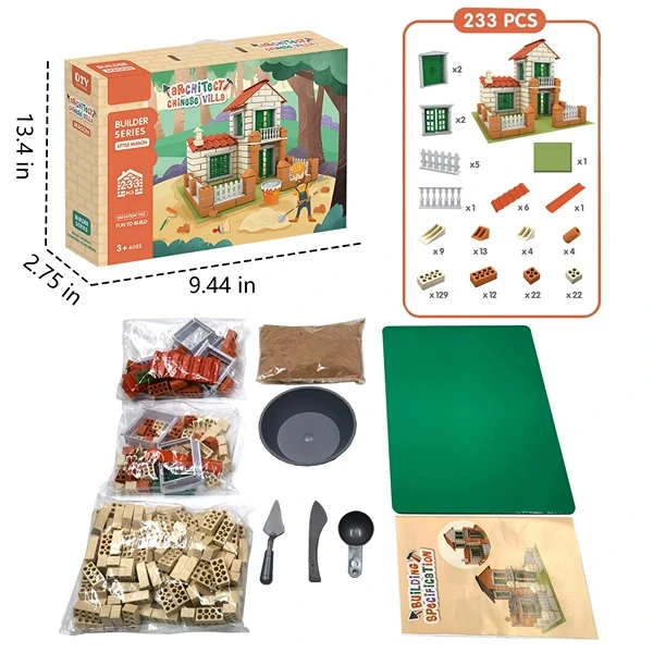 - 233 قطعة ملونة: تحتوي المجموعة على مجموعة متنوعة من القطع الملونة، مما يمكن الأطفال من بناء فيلا جميلة مع تفاصيل معمارية مذهلة.