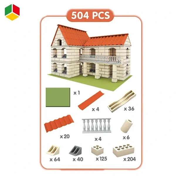 - 504 قطعة ملونة: تحتوي المجموعة على مجموعة متنوعة من القطع الملونة، مما يتيح للأطفال بناء قلعة جميلة مع تفاصيل معمارية رائعة.