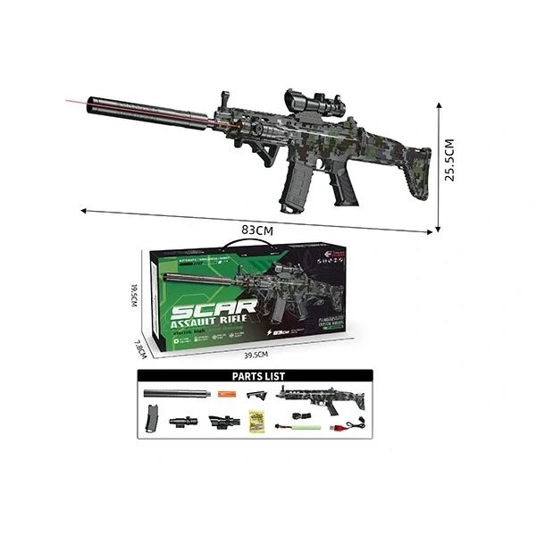 - تصميم واقعي: تأتي بندقية السكار بتفاصيل دقيقة تشبه التصميمات الحقيقية، مما يجعلها مثالية للأطفال الذين يحبون تمثيل الأدوار والمغامرات.