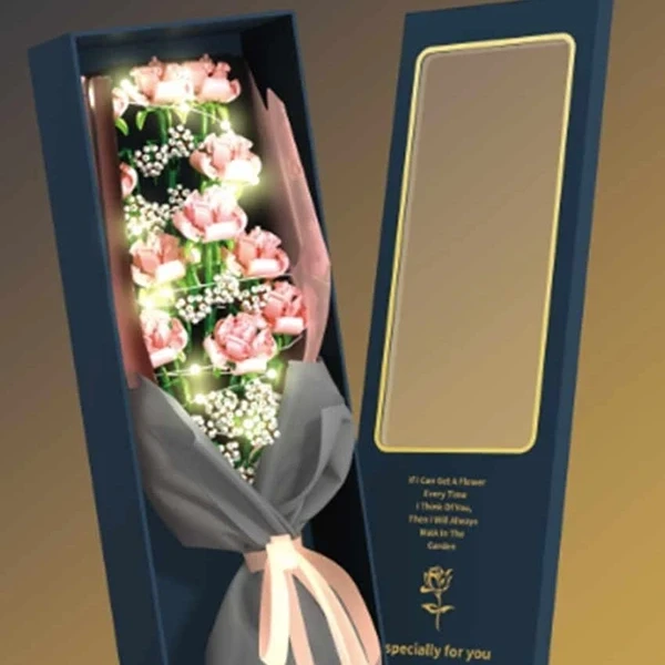 - إضاءة ساحرة: تأتي الباقة مزودة بإضاءة LED ناعمة، تضفي أجواءً دافئة ورومانسية تناسب جميع المناسبات.